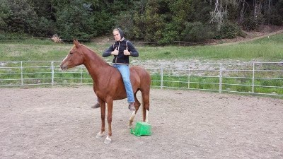 Here’s Sheza the other day, doing wonderfully with April at Moore Horses, and just confirmed to be staying for another 30 days of brain boot camp: