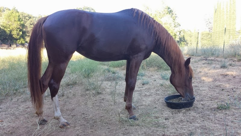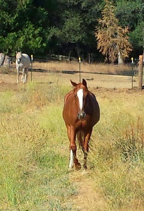 It’s certainly gratifying to come inside the pasture gate with a halter, call your filly, and have her head right over. ❤  You may detect Scrappy the Bathorse's suspicious body language even from a distance in the photo below.