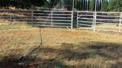 Sheza had a week off when she got home from training, time well spent eating, sleeping, eating, and mooning at the geldings over the fence line. Meanwhile, the (clearly well used *cough*) round pen needed mowing if we didn’t want to wade through knee high thistles, and a sprinkler line put in if we didn’t want to expire in a 40 ft circle of dust.