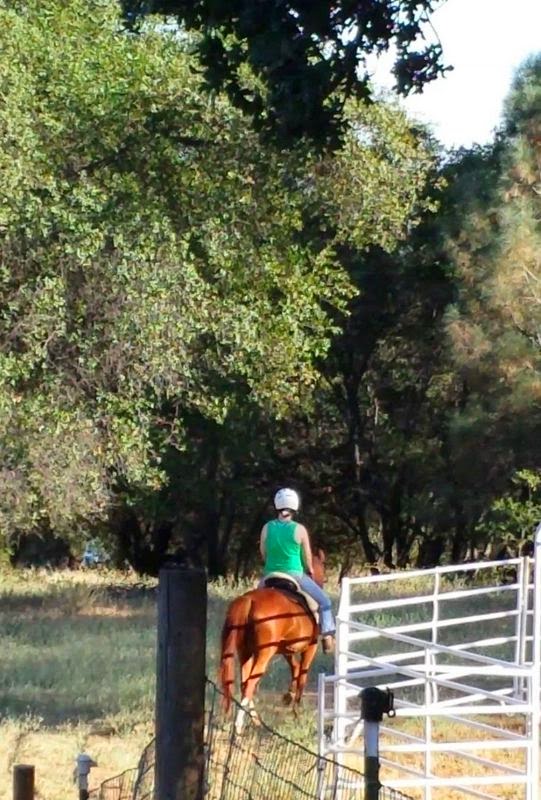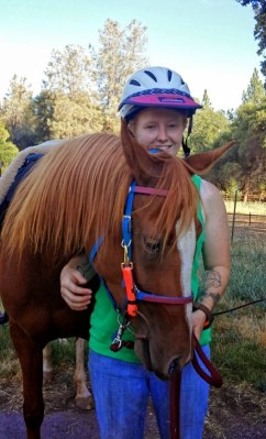 Sheza has always been a gate rusher and she’s the first one to clue into things like “gate means OUT!” whether under saddle or not. As we approached the gate she tried to brace against the bit and rush toward it but I bent her the other way with rein and leg and circled at the trot and walk until we were standing, bored, grazing, again. The big gate isn’t doable from the saddle so I dismounted at a mellow moment and hunted out my husband to take a few more photos!