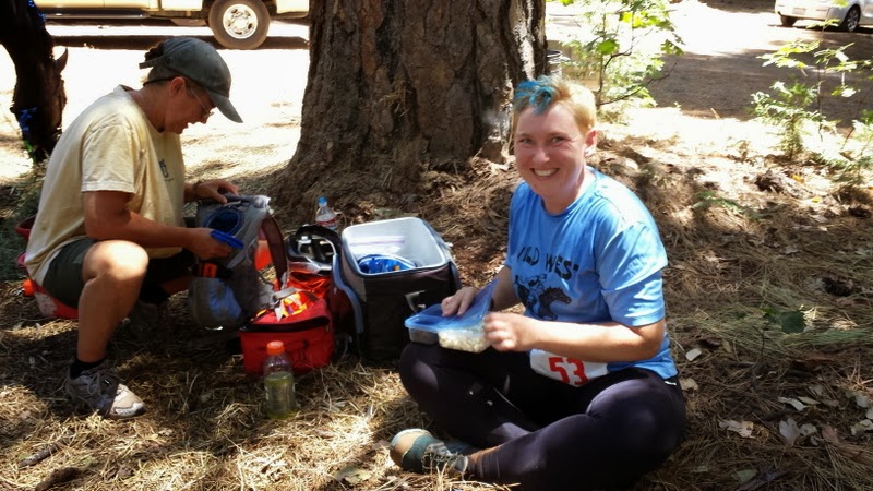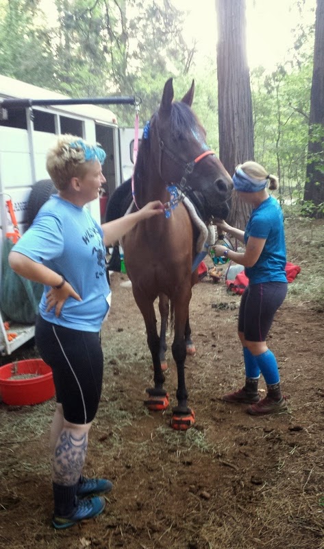 Last weekend I crewed the Ride and Tie Championships for Team Worst Ever, also known as fellow bloggers Mel and Funder. I had a blast helping get Farley and the gals through the day, as well as hanging out with my other crew members including blogger LCT. My other experiences crewing have been for Tevis and while this was RnT Championships the atmosphere was *ahem* a good deal more relaxed than that! The event was held at lovely Dru Barner campground, site of the Gold Country endurance ride coming up this weekend. The high was about 90 but with the shade in camp and breeze it certainly could have been a lot worse for summer in July (says the lucky/unlucky one not out leaving it all on the trail).