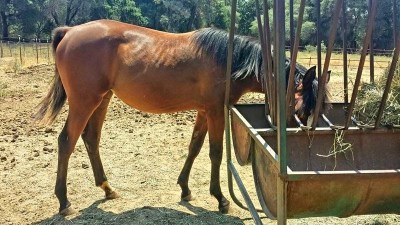 Now I have two “kids.” I took this picture of Rushcreek Aurora (Rory) the other day, as you can see she couldn’t be bothered to look up from her groceries, but it does at least show that her front end has started catching up with her hind end. She’s been extremely butt high since she got here and believe it or not that’s leveling out in this photo. I reflected how calm and sensible she was as I snapped this photo, how unlikely to do silly things, and went on my merry way.