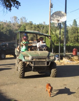 We had a nice cruise through the HOT neighborhood with my mom and I walking and the girls trading off riding Blaze, though we all walked together on foot on the pavement part heading out where we had to pass the Beast of Doom: