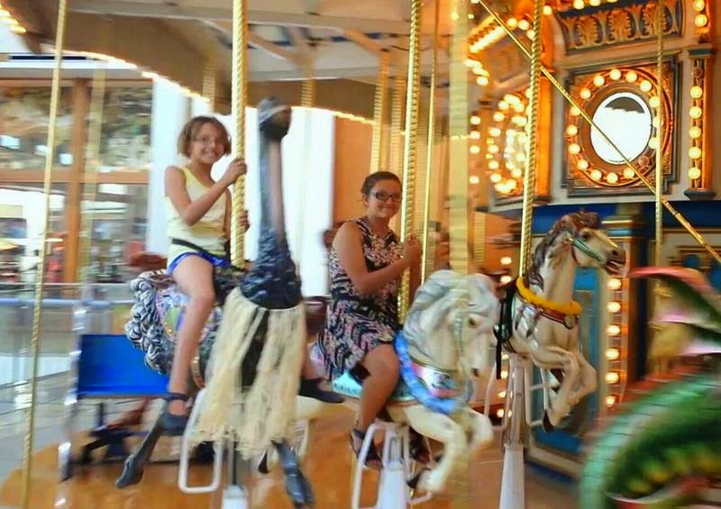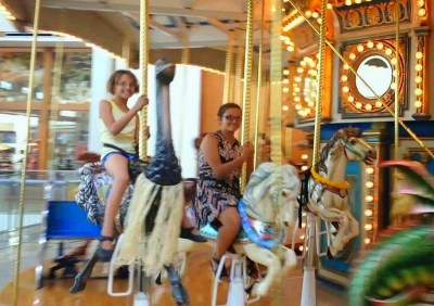 We cooled ourselves off at the river after our horse hike Saturday and spent the evening on a great dinner and board games; Sunday was shopping day, and there’s certainly nothing exciting to be told about the city consumer experience except that we did manage to find some critters for them to ride while in a mall, too!