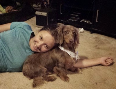 My nieces quite enjoyed the fluffy mini Doxies, and it was pretty mutual!  M and Rip