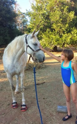 A getting toasty riding Blaze. She ditched using stirrups by her second time on board and wanted to know if I didn’t have 4 saddle horses we could ALL ride and really go somewhere. Horsey girl potential indeed!