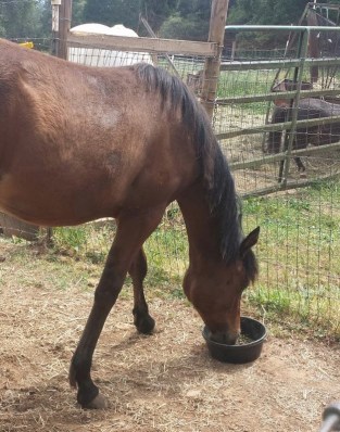 the FIRST mash she ever ate. Took 3 weeks and a different sort of hay pellet to convince her that wet mush is all that is good
