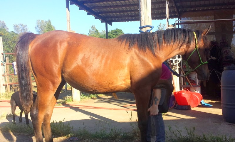 riding my other filly Sheza, looking down at her momma Desire and step-sis Rory