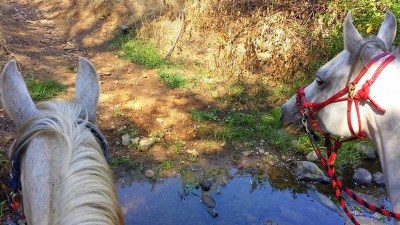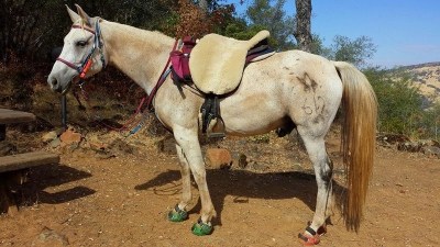 Four weeks passed by in a hot, dusty blink. Work got done, I crewed Ride n Tie Championships for Funder and Mel, various family members visited, lots of hooves got trimmed, I crewed Tevis–but meanwhile none of my horses got ridden. Can’t say that I heard them complaining, but my mind and body craved saddle time so I hooked up with trimming mentor D and her cute new endurance pal Faye for a lake ride today. Faye has been in D’s pasture for a while but was on the back burner for one reason or another; life’s roller coaster has brought her to to the foreground as D’s endurance prospect and they are a great pair that I anticipate seeing out on the AERC trail in the near future! It was so good to see her out enjoying and training for the sport we all love on a horse that can take her there.