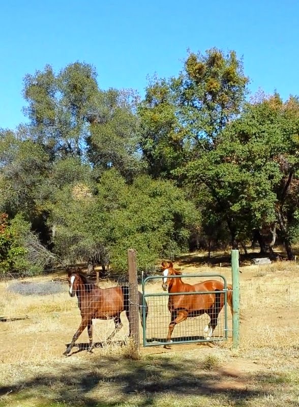 The escape was clearly Rory’s idea, and while Sheza bucked and goofed and headed right for her buddies as I would expect a newly minted young escapee to, Rory made a direct and concerted effort to get out the front gate, a gate she’d seen Scrappy and I ride out from and back to not long before. She also showed no concern that Sheza was haltered and led back to the pasture, deciding instead to adventure out alone in the yard until my husband and his friend shooed her back the right way.