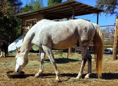 Yesterday I had a chance to do a quick hill workout from home on Scrappy, which was drama in and of itself. Long story short we got surrounded on a paved public road by 300+ lbs of aggressive dogs and in the seconds after I’d thrown everything I had at them and was panic-hoping Scrappy would start kicking, the owner finally called them off and apologized (gee, thanks). Mostly it was a salvageable ride, especially the part where Scrappy was a shit about heading home so he had to turn and trot back up the big hill–and he did so, without flagging! I actually got the impression I’ve been building some fitness in the mellow fellow.