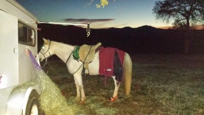 Attending a 3 day multiday ride a mere hour from my house. Scrappy and I were signed up for back to back 50 milers, looking to test our fitness with our first 100 miler on the docket for February. We’d had a frisky but still sensible completion at the Nevada Derby 50 in April, which told me I needed to play with saddle fit and get Scrappy working on the bit, a  bit, any bit, since he Hi-Ho Silvere’ed  through the hackamore I’d been riding him in since purchase. We spent May-November riding LSD miles and working in the round pen, and it was showing to the point where a friend riding him remarked on his change in attitude and body, admiring his recognition of half halts and proper carriage where previously he jutted his jaw and motored on his way how he liked. I felt like we had our shit together physically and mentally, I had back ups for my back up gear, copious rain gear for both of us for the storm predicated to roll in Friday night, a dry bed promised me in a friend’s horse trailer negating need for my tent–surely nothing could go too wrong? (somewhere, endurance elves are snickering..)