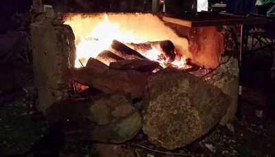 nomming a thanksgiving potluck hanging out with friends around the fire in ride