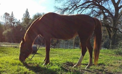 Sheza still got a good round pen workout and some hoof micro managing in and enjoyed a half hour of hand grazing around the property before I glanced askance at the height tape reading 15 hands at the wither–and yes she’s butt high currently– and returned her to Scrappy.