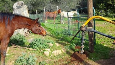 drilled holes & cemented in a few new fence posts to replace ones gone wibbly.