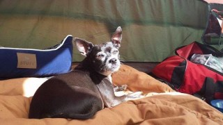 There are no photos of me getting briefly lost finding ride camp in the dark, or my nighttime camp set up shenanigans, but here’s Wednesday a.m. and Scrappy saying “Holy crap mom, we aren’t in Nebraska/Bangor anymore.”
