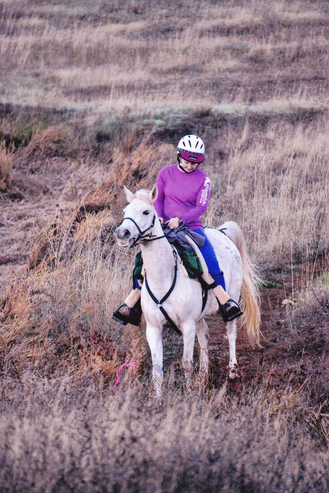 2. Camping/Ride Strategy: At GRS I got lured into the lovely temptation of camping and starting the ride with friend. It’s the most natural thing in the world to want to camp with if not ride with your buddies at these events, but it’s not always the best thing for your horse. In this instance, Scrappy and my friend’s gelding became buddies on arrival, camping at the trailers, strolling around, vetting in etc together, and when we started on ride morning and her gelding set off at a faster trot than he was managing, he came unglued and never recovered his composure until sweetly and sleepily vetting in 27 miles later. I wasn’t willing to let Scrappy run blindly through the uneven but flat and open footing, which meant we fought the entire time, and a yo-yo effect of catching and leaving his “buddy” meant he was just a pisser the whole time.