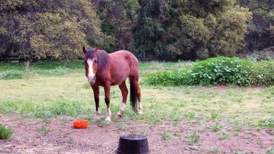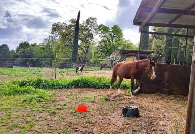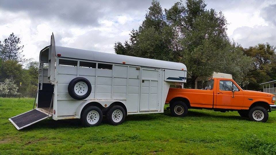 A few weeks back I shared that a Little Bay Gelding was headed our way for life camp. I had hired a shipper and thought that I had the new guy Apache scheduled for the Oregon to CA transit, however the shipper played games with the date. With ever-narrowing eyes and a bit of redhead steam boiling out of my ears I decided right then and there that I didn’t want to use the guy–and just as quickly found a great deal on the perfect size horse trailer I’ve been looking for, not far from Apache. After 6+ years in my faithful 80’s 2 horse straight Miley (and 6+horses in the field), it was time to stretch into a bigger space, so the dogs and husband and I jumped into old Orange and made a 24 hour round trip jaunt north and back. There were a few small kerfluffles along the way but the important part, the horse meeting and loading and safely arriving part, all went wonderfully. And the “new” 90s Morgan built gooseneck hauls like a dream!