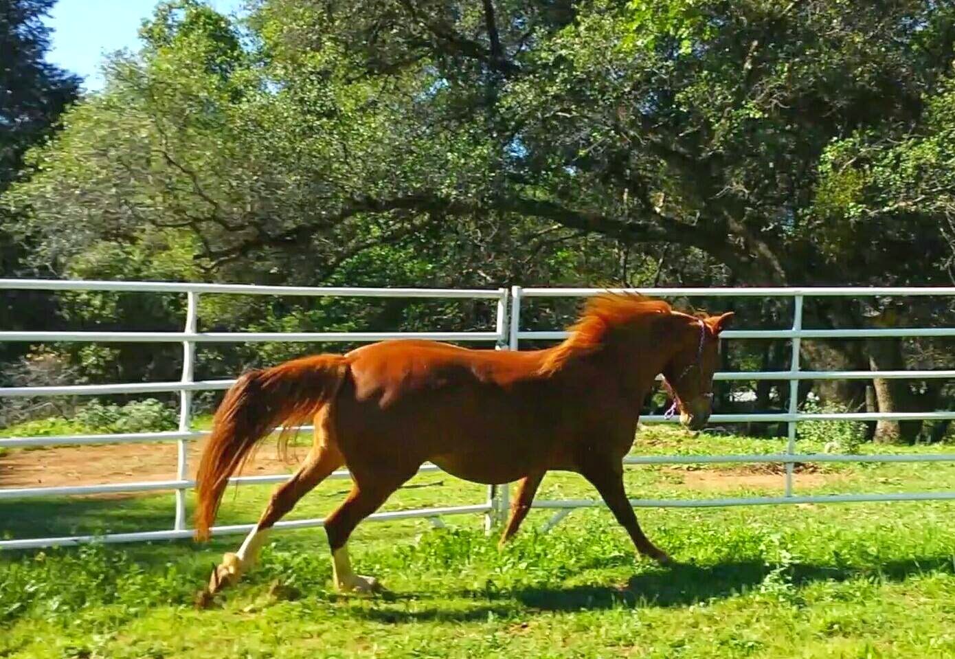I needed some horse time badly yesterday so I pulled Sheza princess out for a front hoof trim and a little round pen session. She is so funny and onto the program in there, to even get this photo below–which really was just the result of wanting her to do anything more than stand and eat–I had to clap and kick dirt at her, after ramping my cues up that far. She doesn’t bother to kick or buck or gallop around hardly at all, which is both ingratiating and sort of a head scratcher. It was quite reassuring when she spazzed about and tired herself out before checking all the right answer boxes, as opposed to giving all the right answers without trying or expending any silliness. Clearly the human needs to keep ahead of the horse, but I’m not entirely sure how all the time.