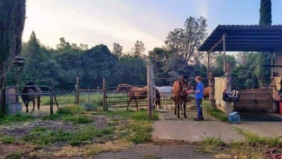 Good boy Spark relaxed even though Blaze was at the other trailer