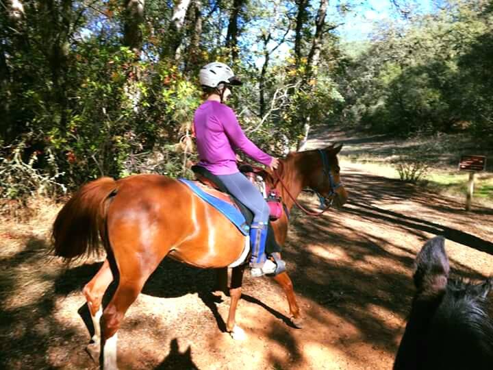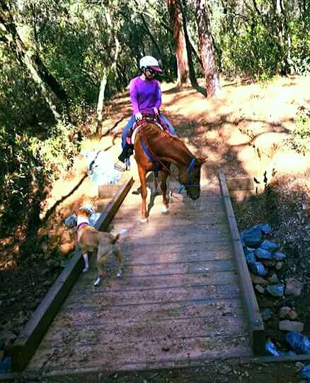 Another big big grin moment came yesterday, when buddy T who took me riding on her horse’s last weekend came down to Lake Oroville to play with my ponies. Her trail dog joined us and the first grins of the ride were prompted by Blaze, who T was ponying her dog off of in populated areas. Blaze got a look in his eye and an arch to his neck that I haven’t seen since our brief foray into team sorting, surely that dog needs herding! He thought so the whole ride, leashed or not.