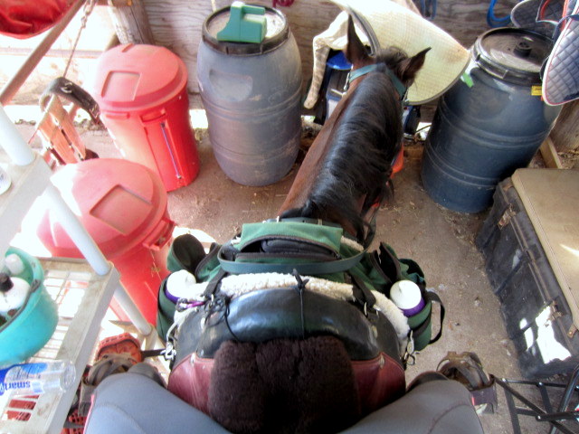 We did 13 miles in about 3:30 and N and I pretty well scrambled our brains on boot and hoof “what ifs.” It was very nice to finish with a happy Scrappy who was moving out well and we got lots of great vet check trot out practice on top of it.