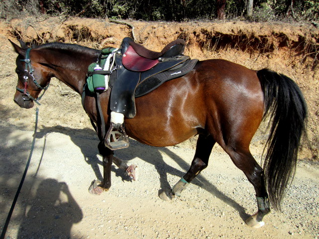 Overall, we had a very fun and successful ride. The details are, about 6 miles out there is a short, steep downhill. Scrappy seemed hesitant and took a few funky/ouchy steps with his left hind going down it, then was totally fine and moved out beautifully for the rest of the ride, with only about a handful more ouchy steps on downhills. I swapped hind boots around to make sure it wasn’t one boot making him do it, there were no pinches or rubs, and N and I finally decided (with fingers crossed!) he had probably become muscle sore using the hind boots the first day and the few ouchy steps on this ride were residual soreness.